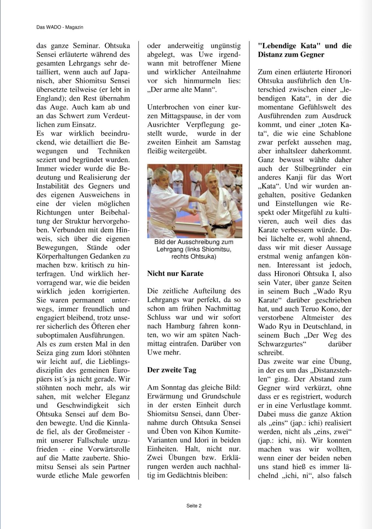 Aus meiner Sicht ein wirklich tolles Seminar, was mich sicher auf dem Weg ein Stück weiter bringt. Ich hatte mich anfangs auf Wadoryu bei Sensei Shimura konzentriert. Dort wurden die Kihon-Techniken und Kata geübt und verfeinert. Interessant war für mich die praktische Erklärung der Kata mit Partner.